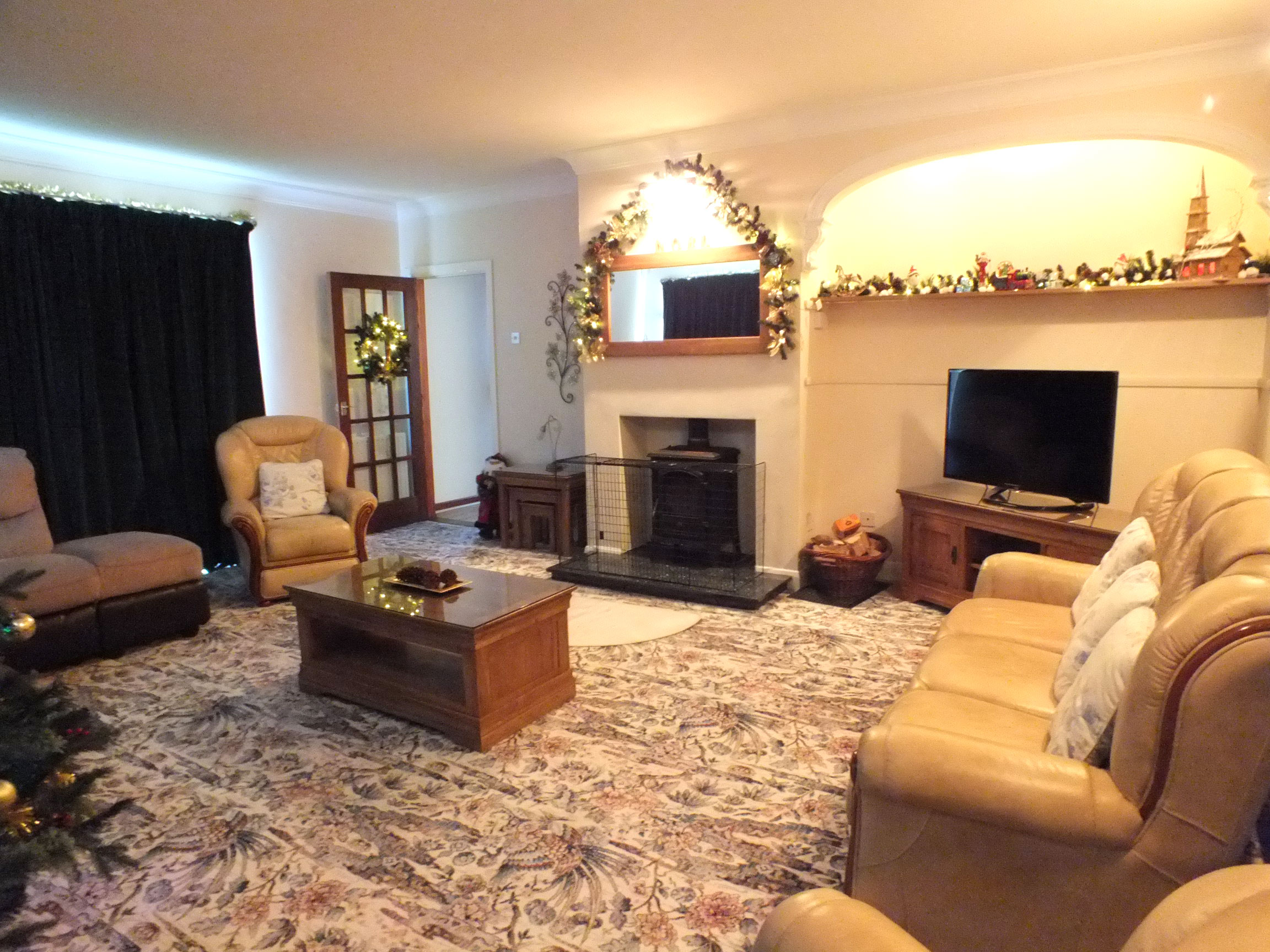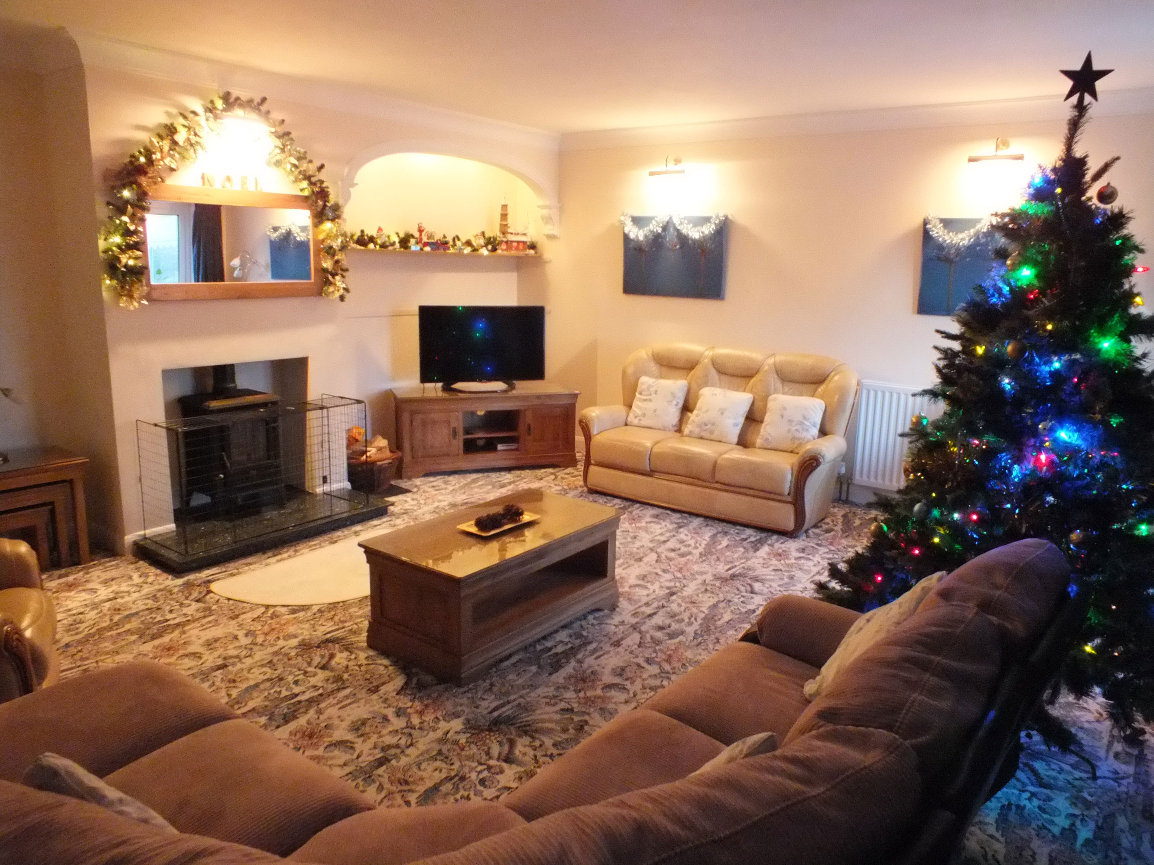 A spacious living room with wood burner (initial fuel included) and a separate dining room.