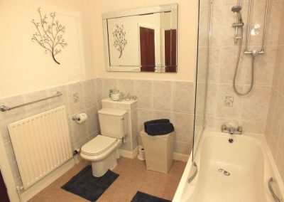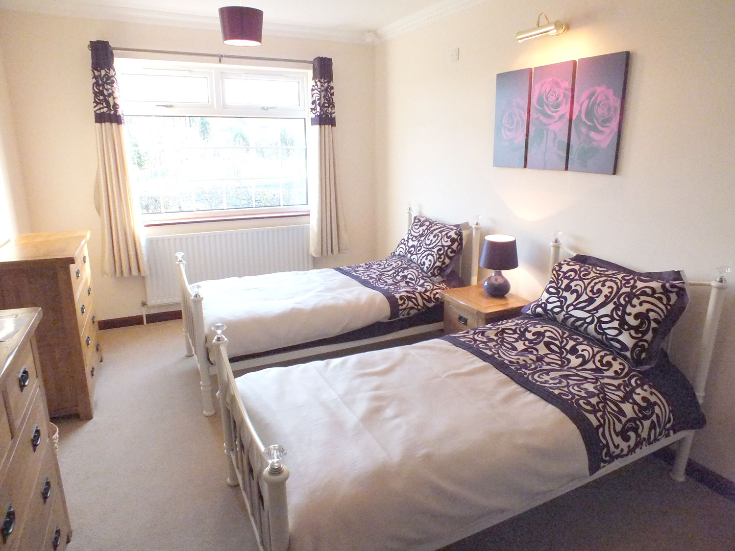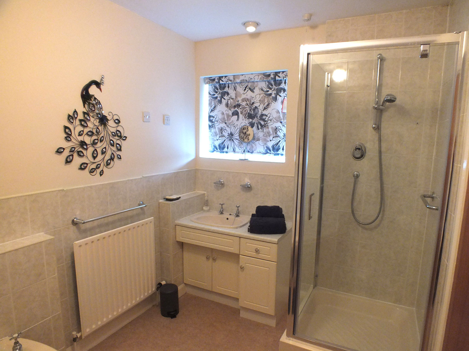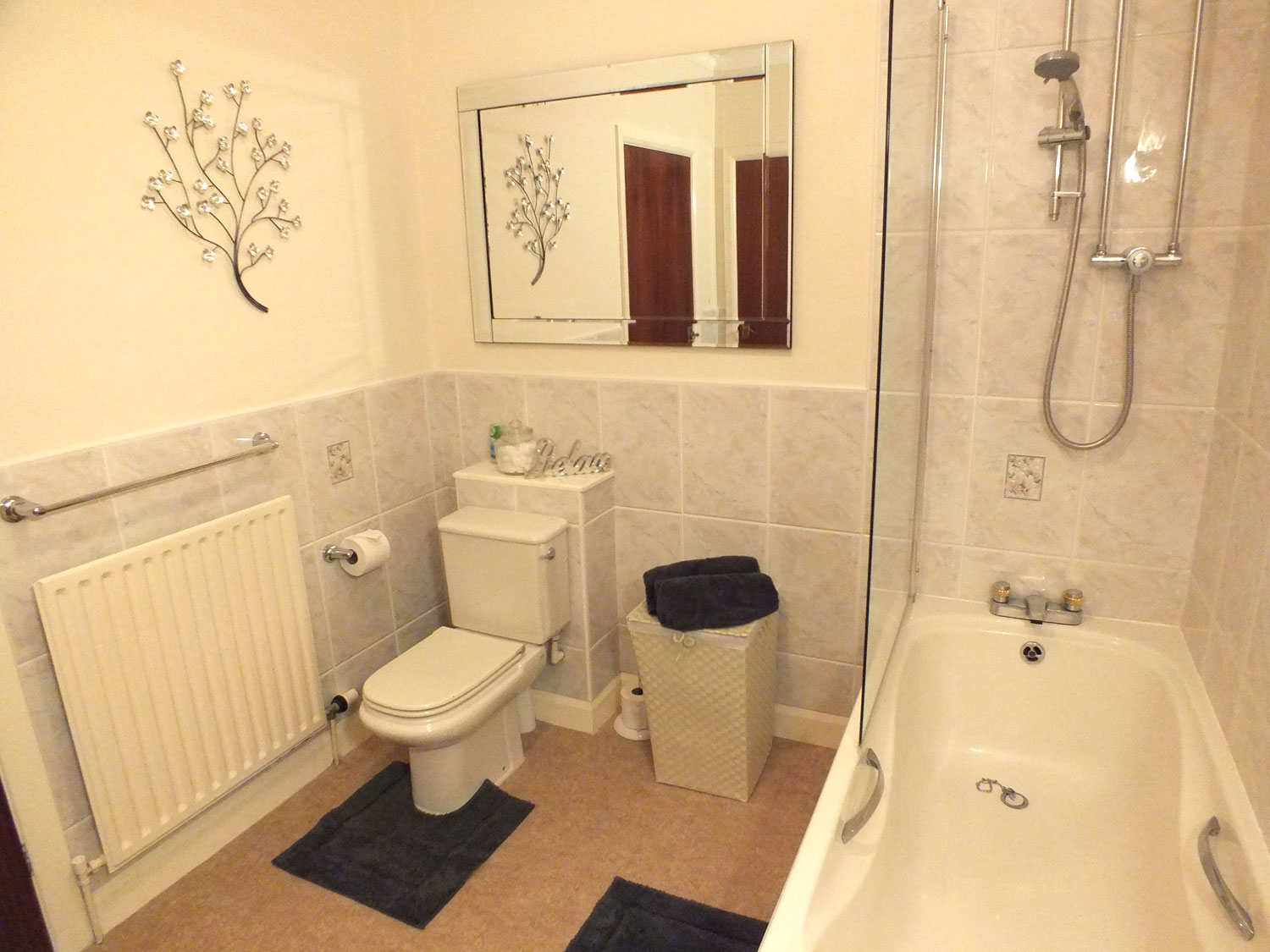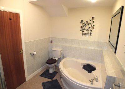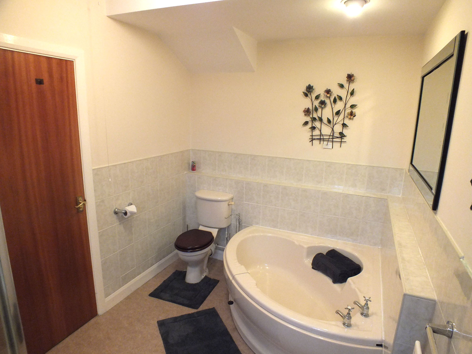 There are 2 double bedrooms with king size beds, one having an en-suite bathroom with corner bath, shower cubicle and toilet; the other an en-suite bathroom and toilet (which also has access from the hall). There is also one twin bedroom.